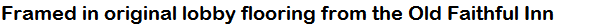 Own a piece of History! Old Faithful Inn frames made with the Lobby floor taken up by Bob Berry during the 2004 renovation of the Inn.