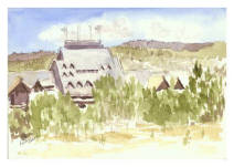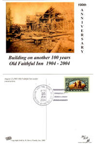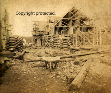 This amateur photo was taken August 23, 1903 while the Old Faithful Inn was under construction. Originally architect Robert Reamer intended the building to be called Old Faithful Tavern, but the Yellowstone Hotel Co. owner, Harry Child changed that name prior to its opening in June 1904. This view was the intended view that Mr. Reamer hoped that each visitor would be blessed to see either coming or going from the Inn, a view of an active Old Faithful geyser. This photo was taken on a Sunday, hence there is no activity around the site. It would have been the perfect time for the architect to survey the progress of his crew. Because the only place the name "Old Faithful Tavern" appeared was on the original plans, it is very likely that it appears on this original photo because Mr. Reamer was there explaining to this Tourist, just what was being built on this site. Own a copy of this historic treaure.
